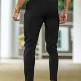 Manfinity bizformal pantalones negros solidos entallados para hombre, pantalones lisos de moda para salir, para regalos al esposo o novio