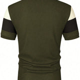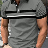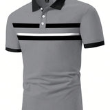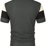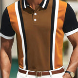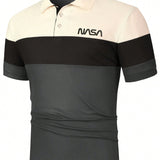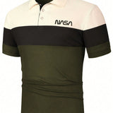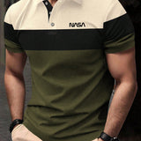 Mode camisa polo de manga corta con cuello, estampado de letras en bloque de colores, para uso casual diario, para golf