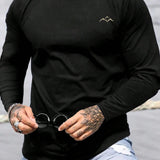 Camiseta de manga larga con cuello redondo casual con estampado de montana para hombres talla 3xl