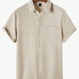 Conjunto de 3 camisas casuales de unicolor con bolsillo y cuello liso de manga corta para hombres, para el verano y salir