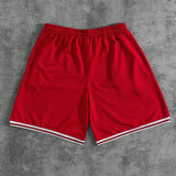 Manfinity sporsity pantalones cortos casuales para hombre de talla grande con cordon, bolsillos, estampado de letras y rayas, para verano, salir, volver al colegio, baloncesto, color rojo oscuro. regalo para el esposo o el novio.