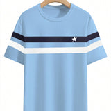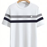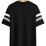 Manfinity homme camiseta de manga corta y cuello redondo de hombre de talla grande con bloques de color, rayas y parches, para uso casual y salir