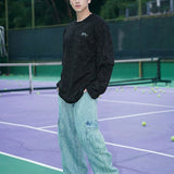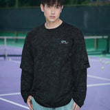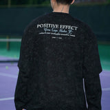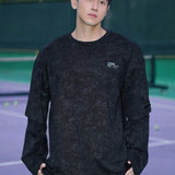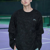 Camiseta de manga larga casual de otono con estampado de letra de cuello redondo sencillo para hombre, negra