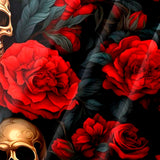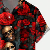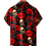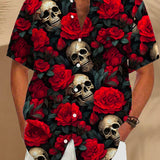Camisa de manga corta con botones y estampado digital 3d con calavera de rosa vintage y musica rock, talla grande para hombres