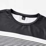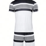Manfinity conjunto casual de fitness y deportes de 2 piezas de camiseta de manga corta con cuello redondo a rayas y pantalones cortos estilo novio para hombres