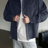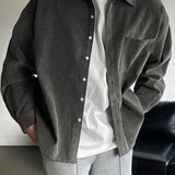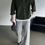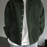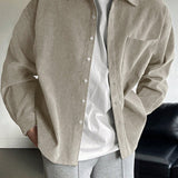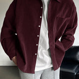 Dazy camisa holgada de manga larga con botones delanteros y bolsillo, de unicolor para hombre