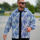 1 pieza chaqueta casual de hombre con estampado digital abstracto, versatil para el uso diario