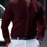Manfinity homme camisa de vestir de manga larga de unicolor y estilo minimalista para hombre, casual, para papa y yo, hombres con "viejo dinero", trabajo. camisa blanca de vestir para hombres, camisas blancas para hombres, blusas blancas para hombres