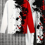 Conjunto casual de 2 piezas de camiseta de manga larga con estampado de tie-dye y pantalones largos con cordon en la cintura para hombre, para primavera/verano