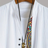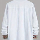 Camisa de manga larga de primavera y otono, de material transpirable, con diseno de cuello alto, multiples botones, parches de unicolor y estampado geometrico, adecuada para uso casual diario, de estilo clasico y minimalista, para hombres
