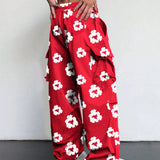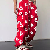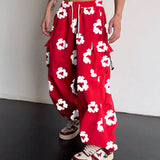 Romwe street life pantalon cargo informal para hombres con estampado floral y cintura con cordon