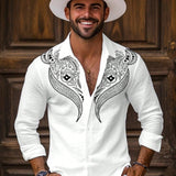 Manfinity homme camisa casual de manga larga con estampado floral, grafica artistica y cuello colorido para vacaciones para hombres
