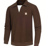 Homme camisa tipo polo de manga larga de unicolor con logotipo bordado para hombre