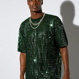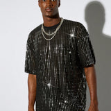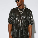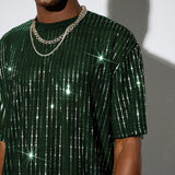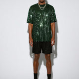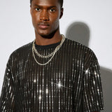 Aknotic 1 pieza camiseta de manga corta con lentejuelas de estilo vintage y2k informal y divertida, de la alta calle, para hombre, adecuado para otono, halloween, regalo para el novio