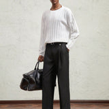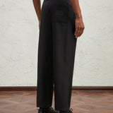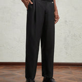 Aknotic business casual pantalones informales de hombre de 7/8 de tela suelta con corte recto, apropiados para el uso diario y eventos, con colgante metalico y etiqueta