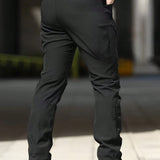 Manfinity homme pantalones cargo casuales de unicolor negro de para hombres, pantalones cargo negros anchos y lisos para trabajo, para regalos a esposo o novio