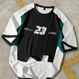 Manfinity sporsity camiseta de manga corta con cuello redondo y diseno de letras en bloque de color para hombres de talla grande, sueter atletico para salir