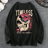 Camiseta de manga larga de cuello redondo para hombre talla grande, top de manga larga informal con estampado de moda para primavera y otono