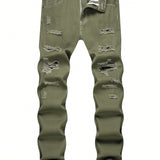 Jeans vaqueros ajustados con efecto desgastado de corte recto, estilo europeo, para hombre