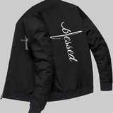 Chaqueta bomber para hombres con cuello de canale, nueva chaqueta casual de primavera y otono con estampado de lema con letra, cierre con cremallera, bolsillos, ropa deportiva y de ocio