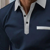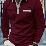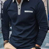 Dauomo camisa polo de manga larga de uso diario minimalista con colores contrastantes para hombres