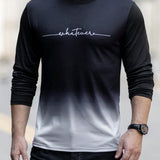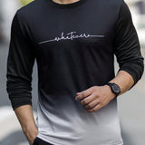 Manfinity homme camiseta casual ajustada con diseno de estampa grafica de letras en degradado de manga larga y cuello redondo para hombre, para salir, para el esposo
