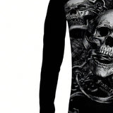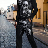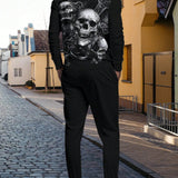 Conjunto de camiseta de manga larga comoda y pantalones deportivos casuales estampados con calavera para hombre, diseno transpirable para deportes al aire libre, pesca, correr, senderismo