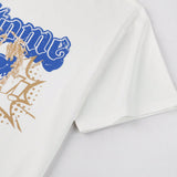 Manfinity streetrush conjunto de pantalones acampanados impresos y camiseta de marca de moda para hombre, ropa deportiva