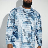 Modagents camiseta de manga larga de cuello redondo, ajuste suelto y hombros caidos para hombres de talla grande