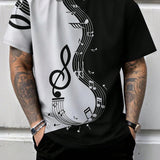 Camiseta de manga corta con simbolo musical para hombres de talla grande