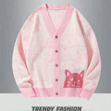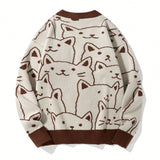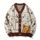 Manfinity hypemode cardigan informal de hombre con bloque de color y patron de dibujos animados para otono, con caida de hombro y diseno chunky con gato, ideal como regalo para el esposo o novio