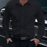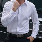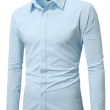 Manfinity bizformal camisa formal de manga larga con botones para hombres, de estilo elegante y maduro para negocios y viajes, adecuada para papa y yo, hombres de clase alta, trabajo, camisa blanca de vestir para hombres