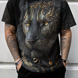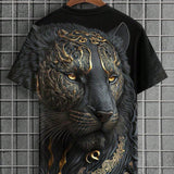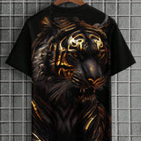 Camiseta casual de manga corta con cuello redondo y estampado de tigre, talla grande, para verano