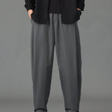 Manfinity hypemode pantalones holgados casuales con diseno de bolsillo de unicolor para hombres, pantalones flojos lisos de tono gris oscuro para eventos, un regalo ideal para esposo o novio