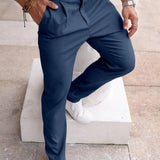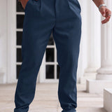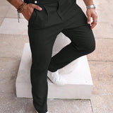 Manfinity homme pantalones casuales rectos holgados con pinzas de unicolor para hombre