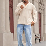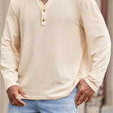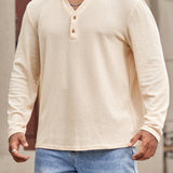 Casualmax sueter casual de manga larga con botones de un solo color para hombres de talla grande, camiseta henley de manga larga lisa para salir