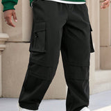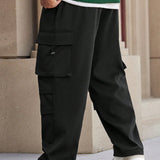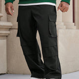 Manfinity casualmax pantalones casuales informales rectos de pierna suelta con bolsillos de carga de unicolor para hombres de talla grande