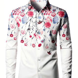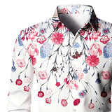 Camisa casual de manga larga con estampado floral digital 3d para hombres de talla grande, nueva ropa urbana para exteriores de otono