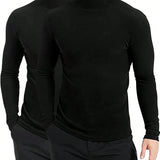 2 piezas/conjunto camisetas de manga larga con cuello alto casuales para hombre, otono e invierno