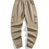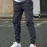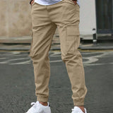 1 pieza pantalones informales de corte slim con cintura con cordon y varios bolsillos para hombre, de unicolor, para primavera y otono