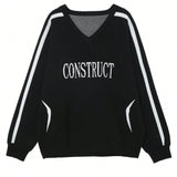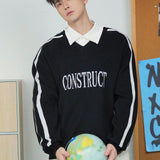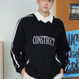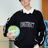 Dazy sueter de punto informal con patron de letras de color block para hombres, otono