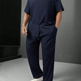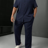 Manfinity homme 2 piezas traje casual de verano de pantalon y camisa de manga corta con botones de unicolor para hombre de talla grande