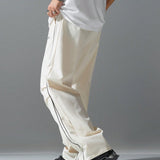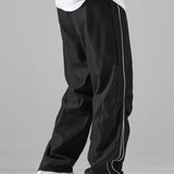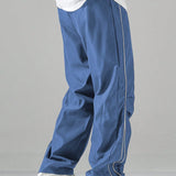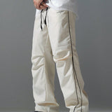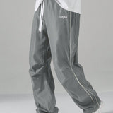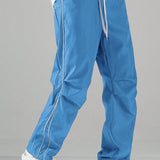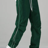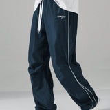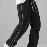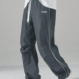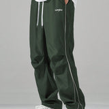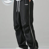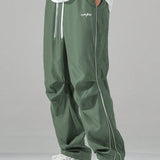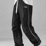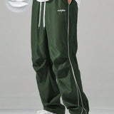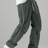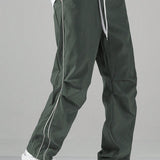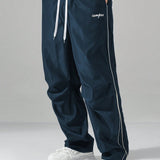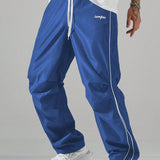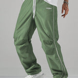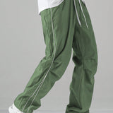 Manfinity hypemode pantalones largos casuales con bolsillo estampado de letras y lazo frontal sencillo para hombres, uso diario