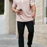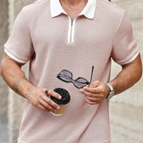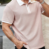 Manfinity casualmax camisa tipo polo de media cremallera con cuello de color contrastante para hombre de talla grande, para verano y salir