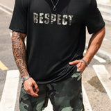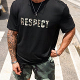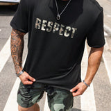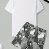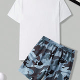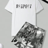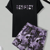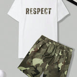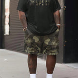 Manfinity homme conjunto de 2 piezas de talla grande para hombre: camiseta de manga corta con estampado de letras + shorts de camuflaje con cordon