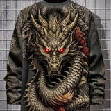 Camiseta casual de manga larga con estampado digital 3d de dragon para hombres, adecuada para primavera y otono