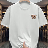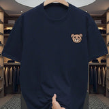 Manfinity dauomo camiseta de manga corta casual de cuello redondo con estampado de oso de dibujos animados para hombres, de verano
