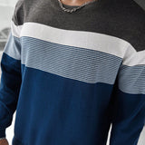 Manfinity citygents sueter de cuello redondo casual de manga larga con bloques de color para hombres de talla grande, para salir