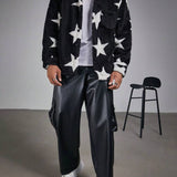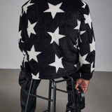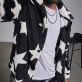 Manfinity roughcore chaqueta de manga larga con botones y estampado de estrellas para hombre de talla grande, otono/invierno
