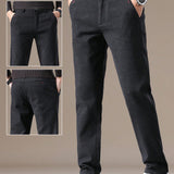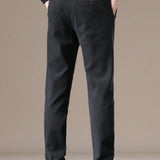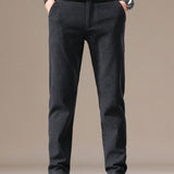 Pantalones rectos casuales de cintura elastica, unicolor, con bolsillos laterales para hombre